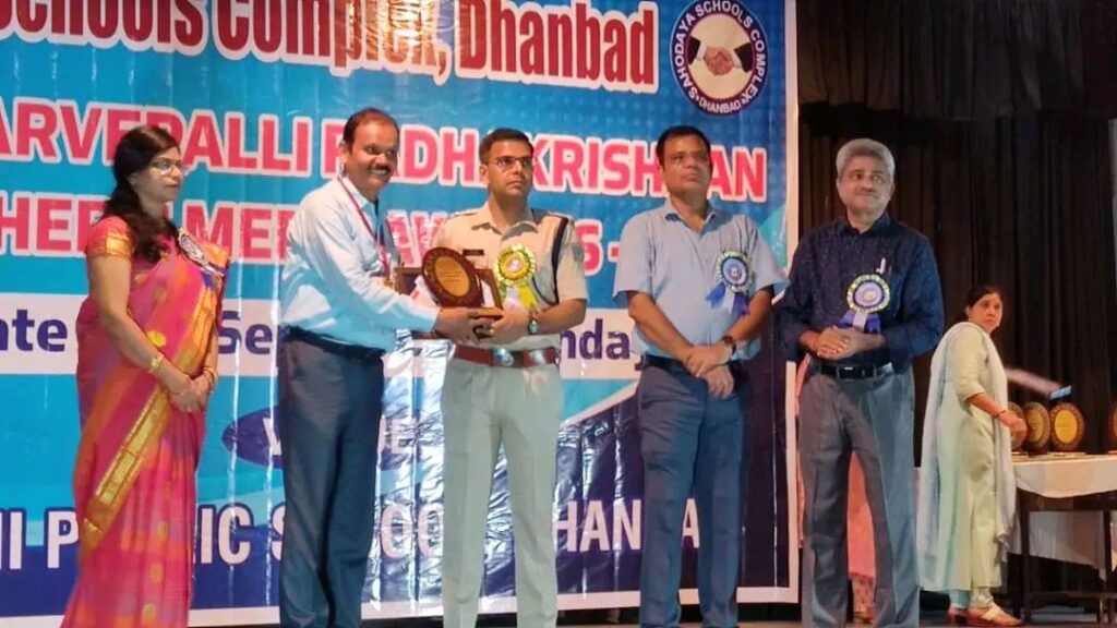 सहोदया स्कूल काम्प्लेक्स के तत्वाधान में डीपीएस धनबाद में डॉ॰ सर्वपल्ली राधाकृष्णन टीचर मेरिट अवार्ड 2025 कार्यक्रम का आजोजन किया गया। इस कार्यक्रम में एसएसपी प्रभात कुमार मुख्य अतिथि के रूप में शामिल हुए। इस अवसर पर जिले के विभिन्न विद्यालयों के प्राचार्यों एवं शिक्षकों को उनकी उत्कृष्ट शैक्षणिक उपलब्धियों और शिक्षा के क्षेत्र में दिए गए योगदान के लिए सम्मानित किया और समाज में शिक्षकों की भूमिका व जिम्मेदारी की सराहना की।