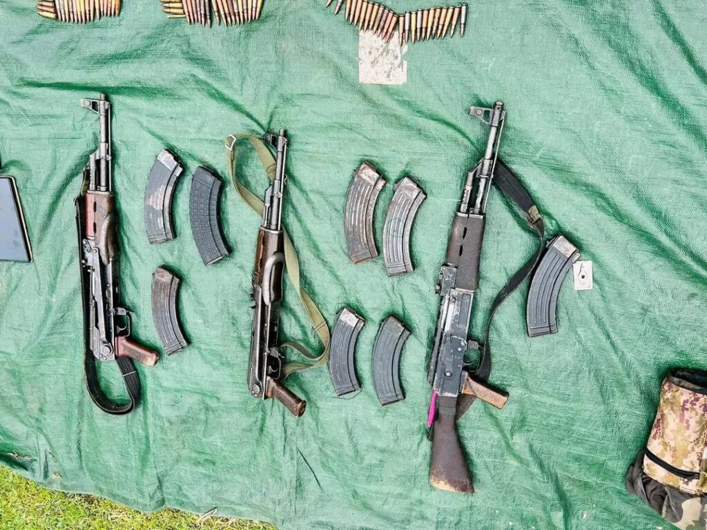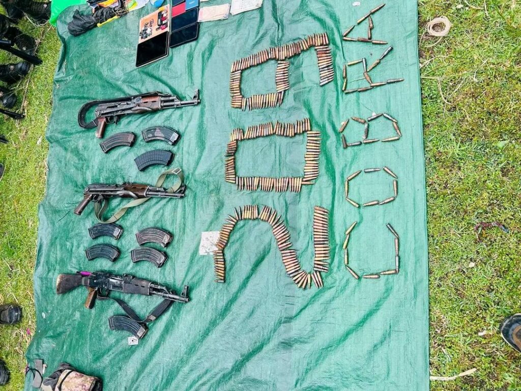 तीन नामी इनामी उग्रवादी ढेर, एके-47 समेत भारी मात्रा में हथियार बरामद