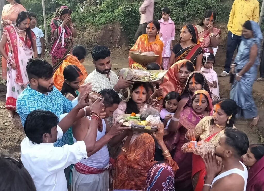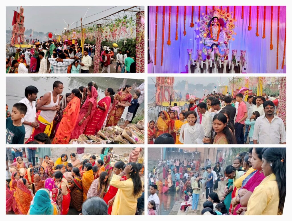 नावागढ़ में श्रद्धालुओं ने उदयगामी भगवान सूर्य को दिया अर्घ्य